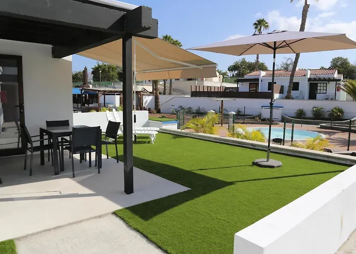 Lägenheten Precioso Bungalow En Complejo Privado Con Piscina Maspalomas med 1 sovrum, som ligger 4 km från Playa Nudista Montaña Arena, har en pool på en terrass. Cirka 10 minuters bilresa från den 60 m² stora lägenheten hittar du Aqualand Maspalomas Vattenpark.